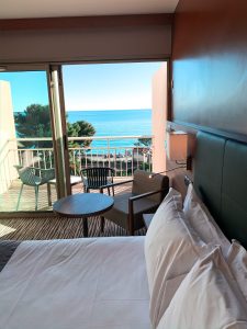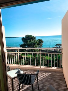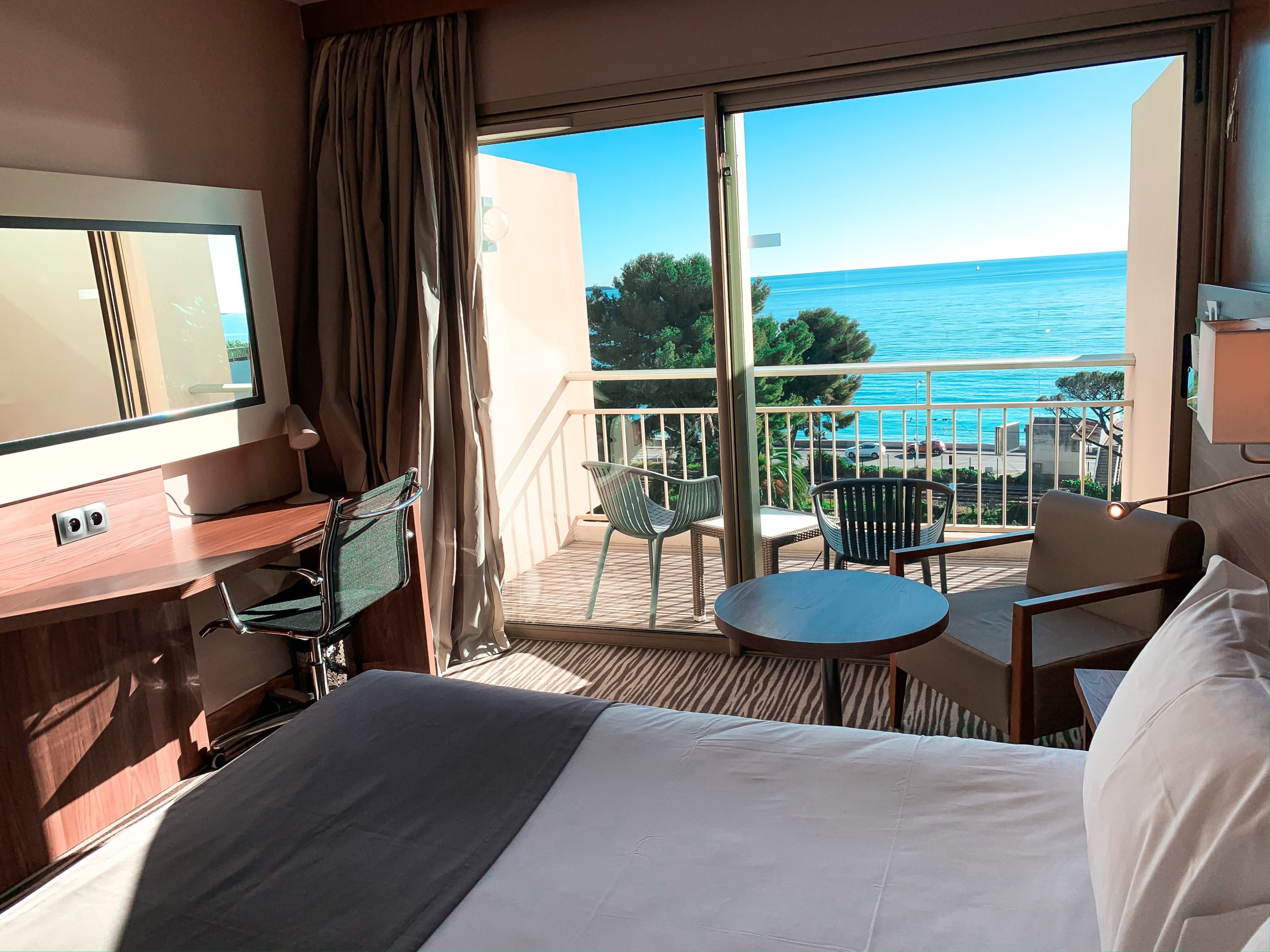Seaside room on the high floor, you will enjoy the magnificent view of the bay leading from Cannes to Mandelieu from your terrace